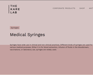Powered The Kare Lab's market expansion with high-converting B2B copy for their disposable syringes line. Crafted compelling content that turns procurement officers and medical distributors into buyers by showcasing manufacturing precision, regulatory compliance, and competitive wholesale advantages—driving measurable growth in a competitive medical supply landscape.